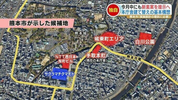 本庁舎の建て替えを巡っては、2月 熊本市議会の特別委員会で建設候補地4か所のほか概算事業費の470億円などが熊本市から示されました。