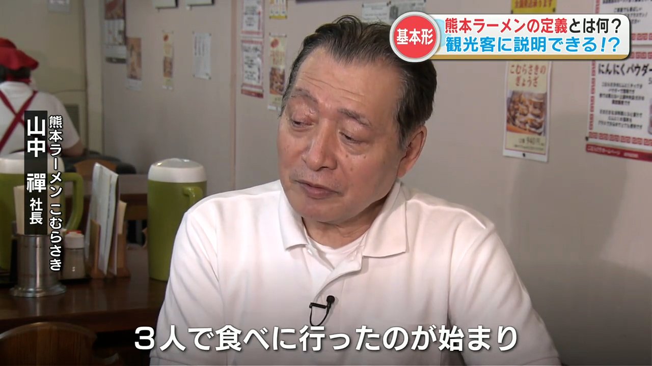 熊本ラーメン こむらさき 山中禪社長「うちの父と前の味千拉麺の社長さんと(友人が)、なんか美味しいの(ラーメン)が玉名にあるって3人で食べに行ったのが始まりで…当時こういう脂っこいものってチャンポンくらいしかなかった」