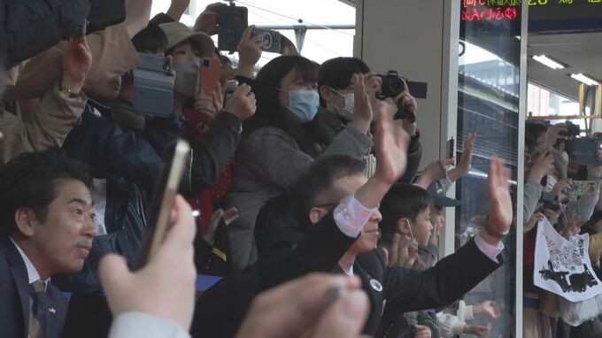 午前7時過ぎ、ラストランを一目見ようと熊本駅には多くの人が集まりました。