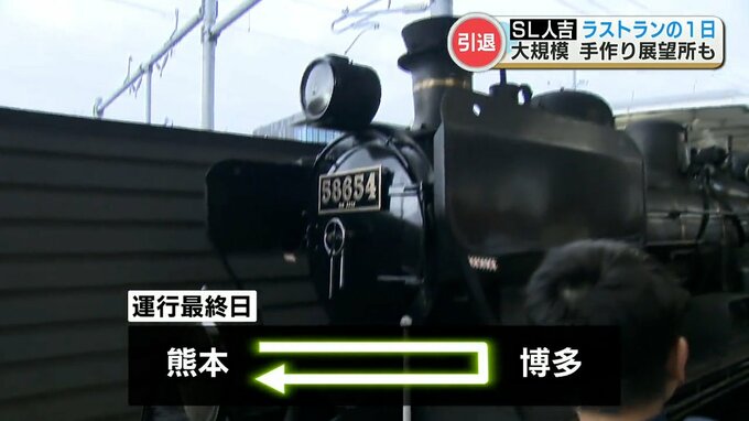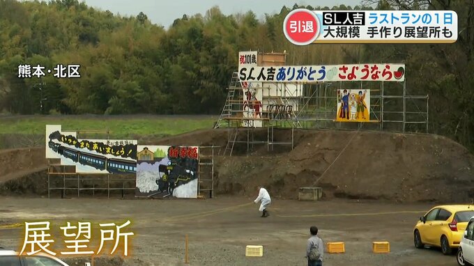熊本市北区の田原坂駅近くではSL人吉を見送るための展望所が出現。地元の建築士、太田行雄さんが多くの人と一緒に見送りたいとの思いで、2か月かけて自費で整備しました。