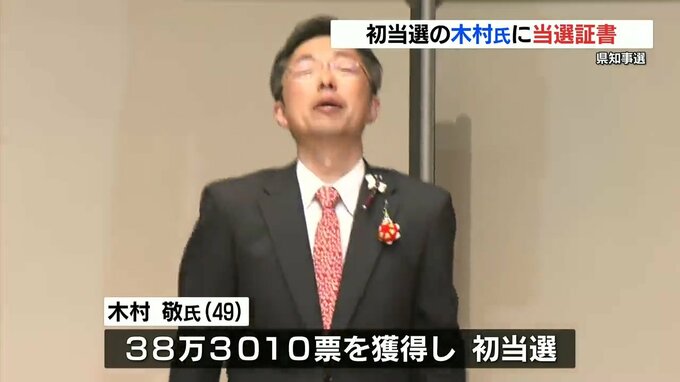 元副知事の木村敬さんは今月24日投開票の県知事選挙で38万3010票を獲得し、初当選しました。