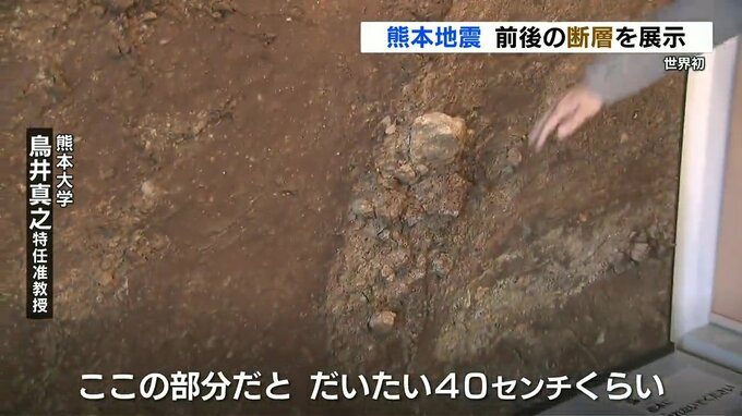 熊本大学 鳥井真之 特任准教授「これが向こう側にずれている、奥の方に。ここの部分だとだいたい40㎝くらい。一番大きくずれたところはだいたい50㎝程度ずれていました」