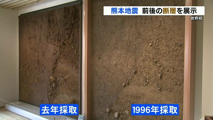 大地震の前と後の断層が並んで展示されるのは世界初だということです。