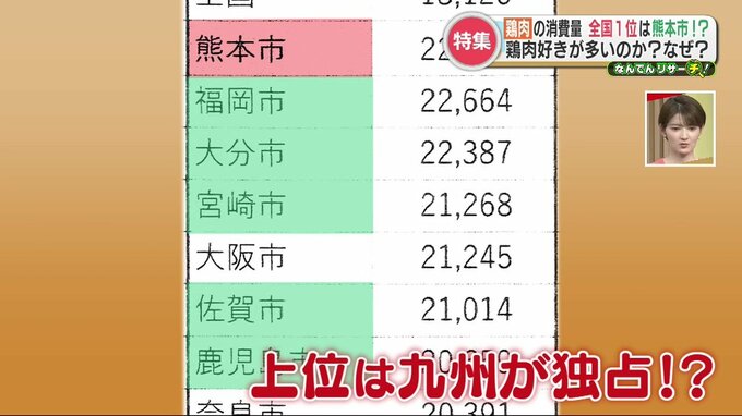 上田さんは、宮崎や鹿児島など全国有数の鶏の産地が近くにあることも消費量に影響しているのではないかと言います。