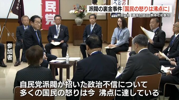 岸田総理は、自民党の派閥の裏金事件を受けた「政治刷新車座対話」に熊本市で参加し、党員や県連の執行部と意見を交わしました。
