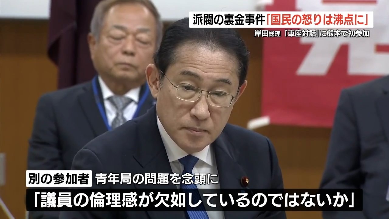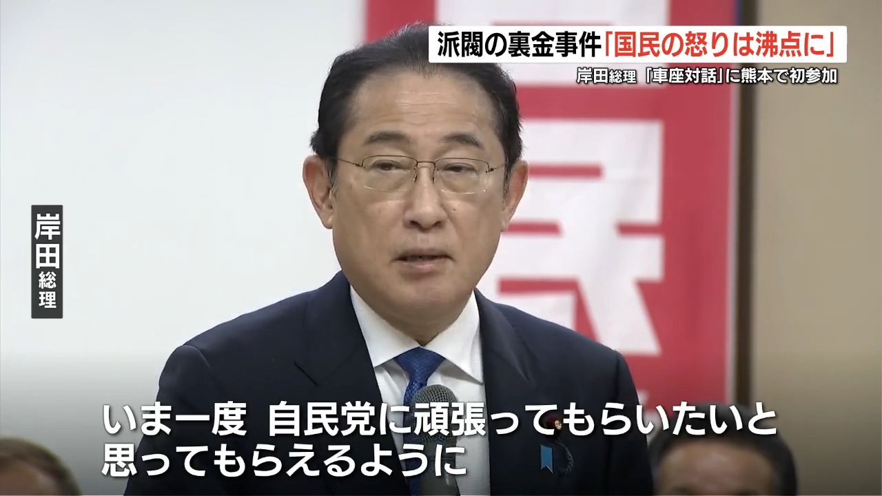 岸田総理は、自民党の派閥の裏金事件を受けた「政治刷新車座対話」に熊本市で参加し、党員や県連の執行部と意見を交わしました。