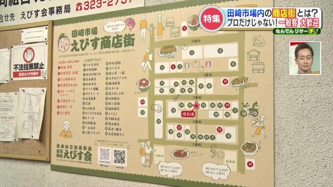 実は、一般客も大歓迎の田崎市場内の『えびす街商店街』。メンバー一丸となって、名実ともに県民の台所を目指します。