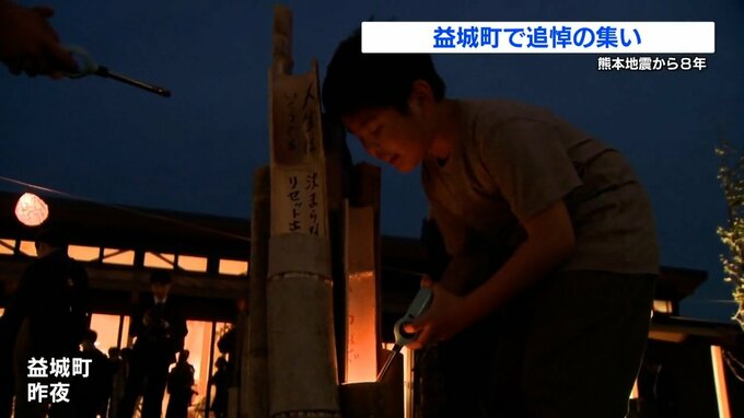 熊本地震の前震からきのう(4月15日)で8年。益城町では追悼の集いが開かれ多くの人が祈りを捧げました。