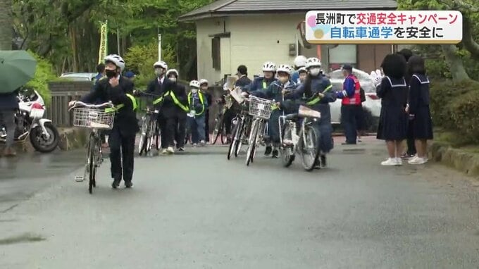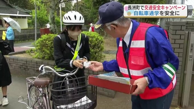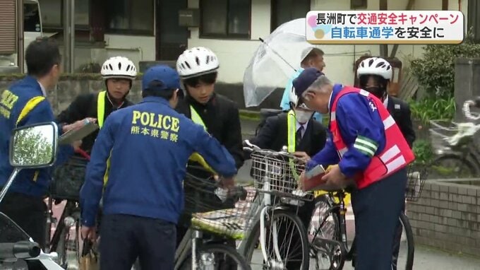自転車通学をする生徒を対象にした交通安全キャンペーンが熊本県の長洲町(ながすまち)で実施されました。