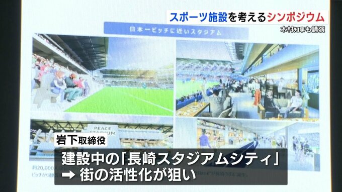 シンポジウムではまず、長崎県に本社を置くジャパネットホールディングスの岩下英樹(いわした ひでき)取締役が講演し、同社が長崎市で今年秋の完成を目指して建設を進める複合施設『長崎スタジアムシティ』の狙いは、サッカースタジアムを中心とした街の活性化だと強調しました。