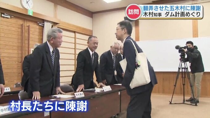 木村知事は五木村役場を訪れ、木下丈二(きのした じょうじ)村長たちに陳謝しました。