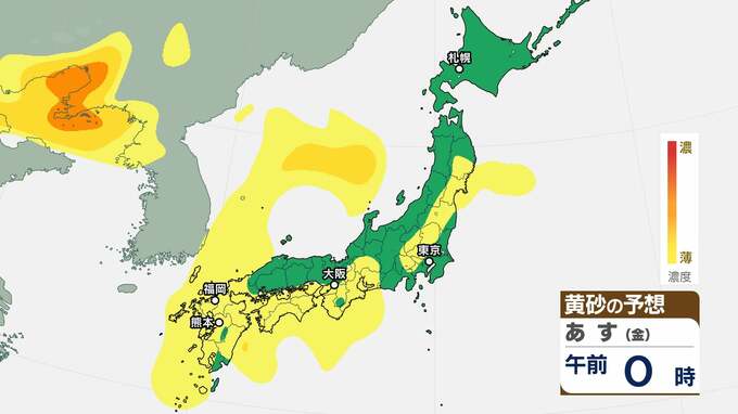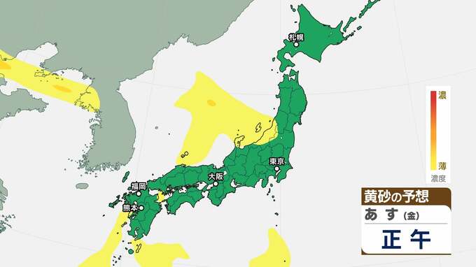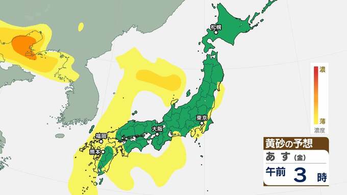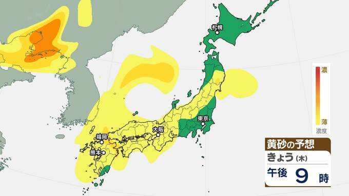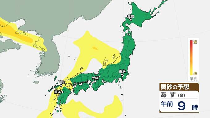 【黄砂情報】北日本から西日本の広い範囲で黄砂が観測 見通しの効く距離が10キロメートル未満となっている所も