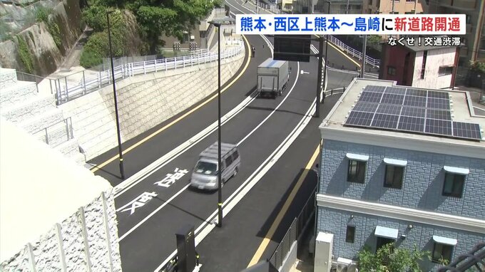 渋滞緩和などを目的に工事が進められてきた熊本県熊本市西区の上熊本と島崎を結ぶ道路が4月19日に開通しました。