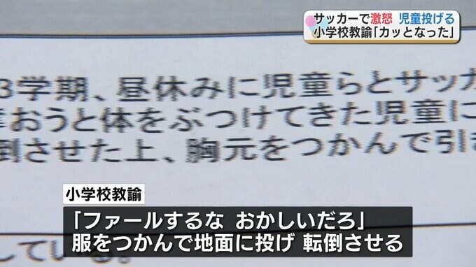 熊本市の小学校で、教諭が一緒にサッカーをしていた児童を投げて「けが」をさせていたことが明らかになりました。