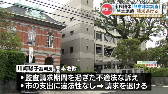熊本市役所本庁舎の耐震性能の調査を巡る裁判で、熊本地方裁判所は市民団体の請求を退けました。
