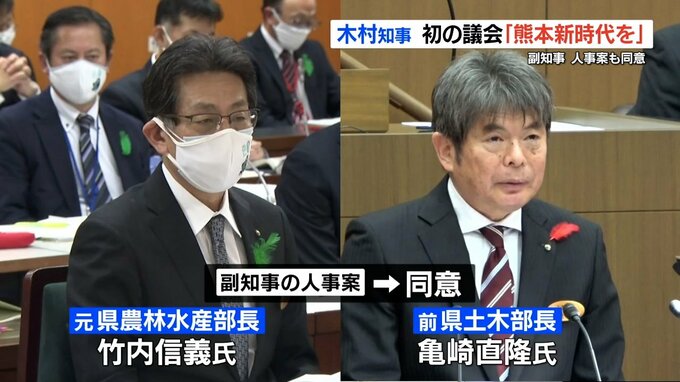 また新体制の要となる副知事の人事について、元県農林水産部長 竹内信義(たけうち しんぎ)さんと、前の県土木部長 亀崎直隆(かめざき なおたか)さんを起用する案が議会で同意されました。