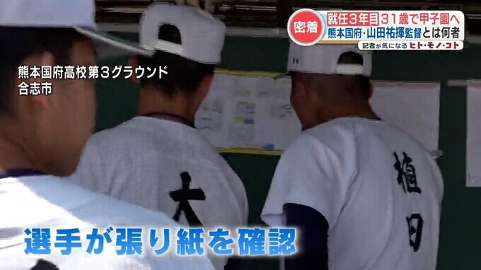 グラウンドに到着し練習が始まると、何やらベンチにある張り紙を確認する選手たち。