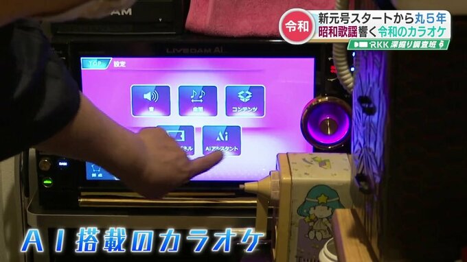 カラオケには、令和になってその名が知られるようになった「AI」=人工知能が搭載されていて、マイクに向かって曲名を言うだけで曲を入れることができる最新の機種です。