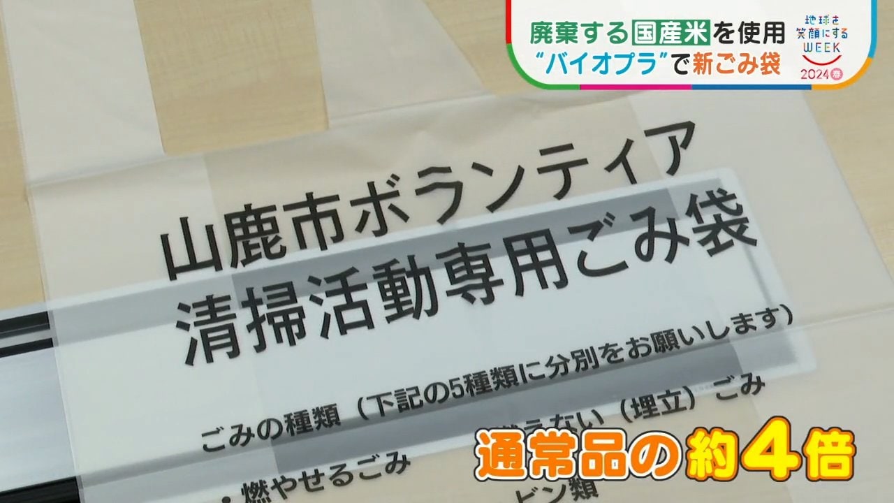 山鹿市がボランティアの清掃活動用として、新たに作ったゴミ袋。