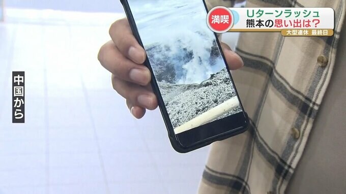 中国から「訳)活火山を見に阿蘇山に行きました。名物の馬刺しを食べました」