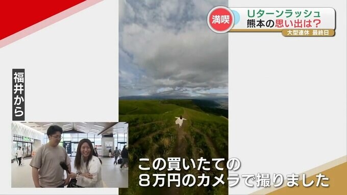 福井から「阿蘇山のいろいろなスポットに泊まって毎回写真を撮って、この買いたての8万円のカメラで撮りました」「満喫しました。あとは電車で寝ます」