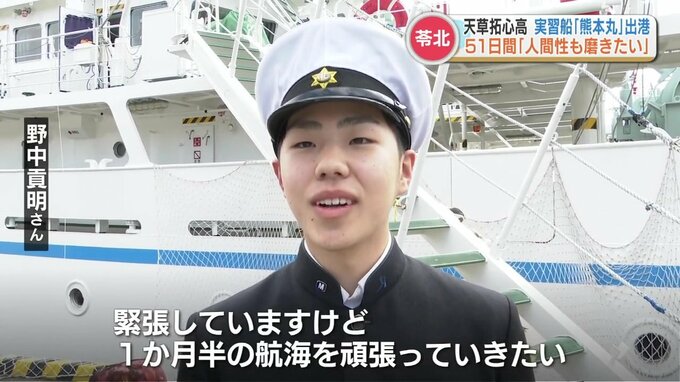 3年 野中貢明さん「緊張していますけど、1か月半の航海を頑張っていきたいと思います」
