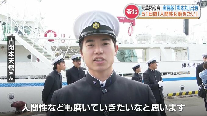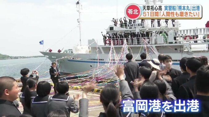 熊本県立天草拓心(たくしん)高校の実習船『熊本丸』がきょう(5月8日)、苓北町の富岡港を出港しました。