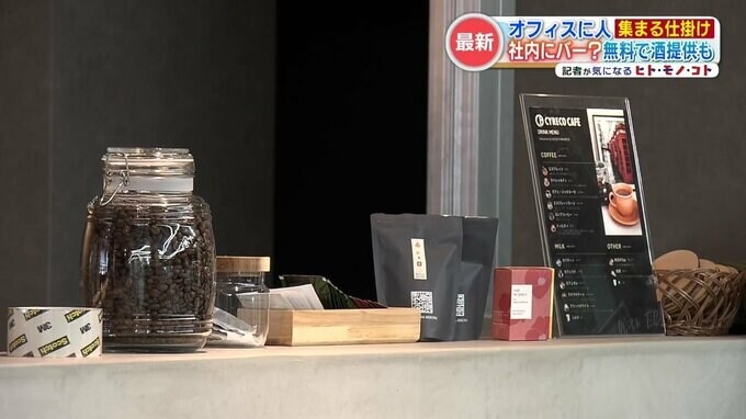 福田さん「カフェメニューがありまして、社員が無料で飲むことができます。毎週金曜日は『CYBAR』(サイバー)と言いまして、バーカウンターでお酒も無料で提供しています」