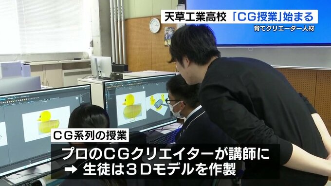 天草工業高校で『コンピューターグラフィックス』学ぶ「CG系列」誕生 プロが講師に 熊本 2024年5月11日(土) 12:15 国内 ゲームやアニメなどのクリエーター人材を育てようと、熊本県天草市の県立高校で、コンピュータグラフィックスを学ぶ「CG系列」が新設されました。今年度(2024年度)、天草工業高校の情報技術科に誕生した「CG系列…