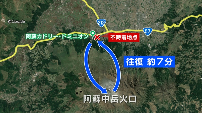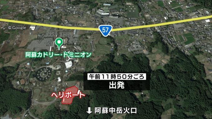中国からの観光客の男女2人を乗せてカドリー・ドミニオンのヘリポートを出発。ヘリコプターは阿蘇・中岳火口を上空から見物するコースを飛ぶ予定でした。