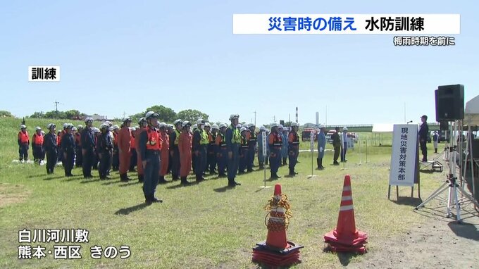 梅雨時期を前に、熊本県熊本市の白川河川敷では水防訓練が行われました。