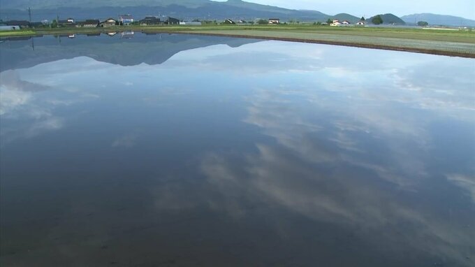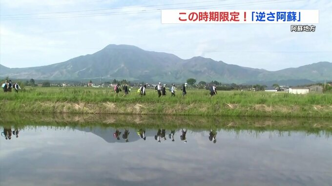 阿蘇地方では今朝、水を張った田んぼに阿蘇五岳(あそごがく)が映るこの時期限定の「逆さ阿蘇」の景色が見られました。