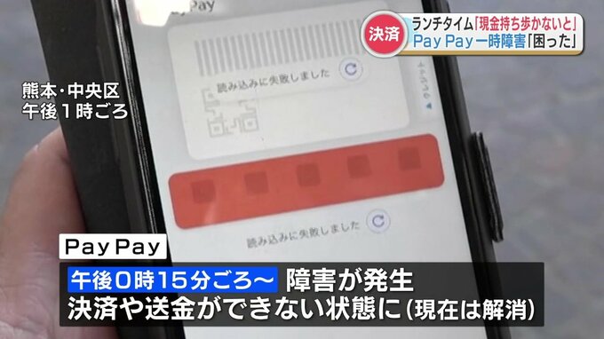 PayPayによりますと、障害は午後3時半頃に解消したということです。