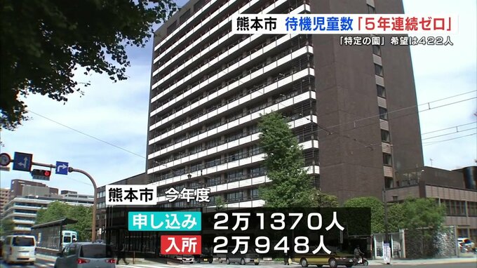 熊本市は「第一希望の園に入所できなかった児童に対して入所可能な園を紹介するなど調整した結果」とし、待機児童はゼロになったということです。
