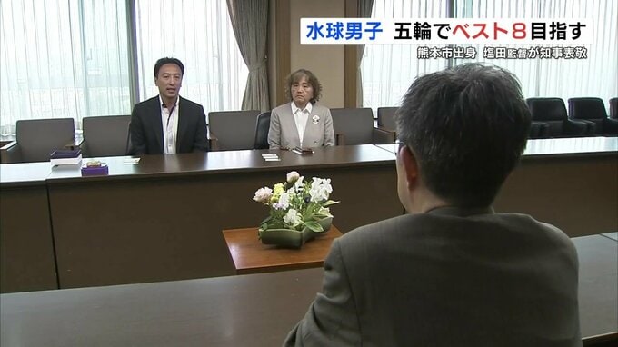 5月20日、熊本県庁を訪れた塩田監督が、木村知事にパリオリンピックでの活躍を誓いました。