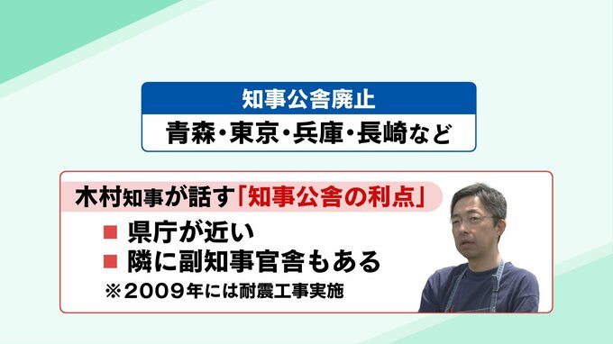 知事公舎は長崎や兵庫など廃止した県もありますが、木村知事は「県庁が近く、隣に副知事公舎もあるので、緊急時にすぐ対応できる」と利点を話しています。