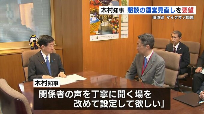 5月23日に伊藤環境大臣のもとを訪れた木村知事は、この問題について「懇談のあり方を見直してもらい、関係者の声を丁寧に聞く場を改めて設定して欲しい」と要望しました。