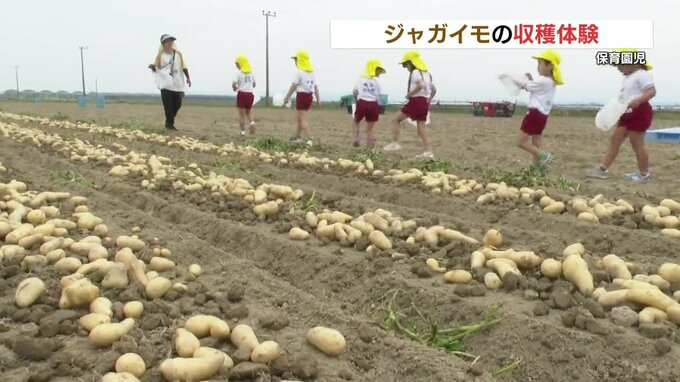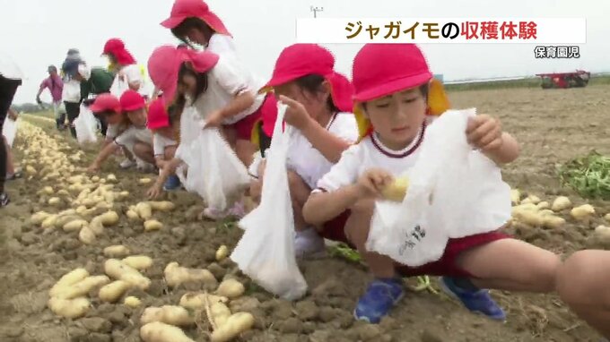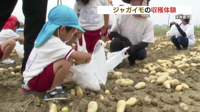 このジャガイモは、煮崩れしにくくほんのり甘い品種で、園児たちは自宅に持ち帰りとれたての味を楽しむということです。