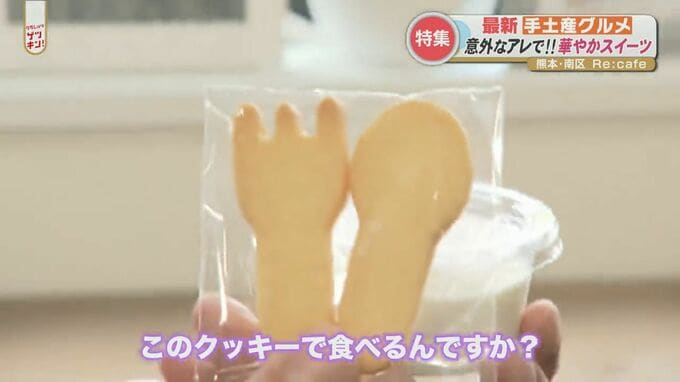 「こちらクッキーでして、こちらですくって食べていただいてもよろしいでしょうか」