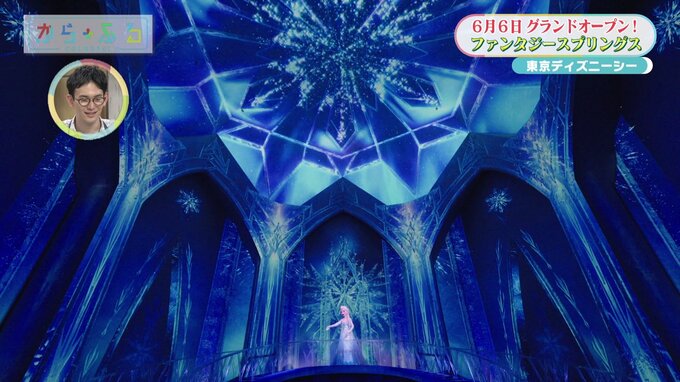 アナの『生まれてはじめて』、エルサの『Let It Go』などにあわせた美しい演出ととともに、映画の世界を旅することができるんです。