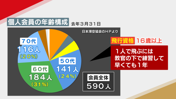 今回の事故は20代ですが、グライダーの愛好家団体によりますと、会員は50代や60代が中心です。資格は16歳で取れますが、1人で飛ぶには教官のもとで練習して早くても1年かかるそうです。