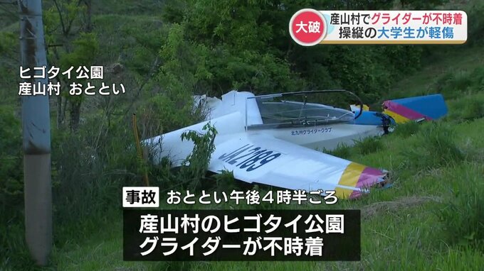 5月25日午後4時半ごろ、熊本県産山村(うぶやまむら)のヒゴタイ公園にグライダーが不時着しました。操縦していたのは九州工業大学の20代の男子大学生で、足にかすり傷を負う軽傷でした。