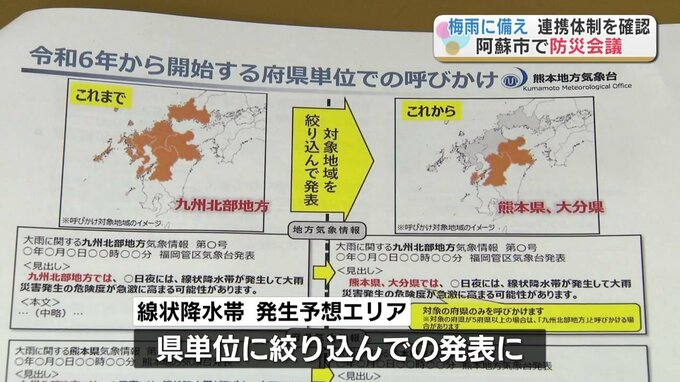 梅雨に備えた災害対策会議が熊本県阿蘇市で行われ、各防災機関の連携体制などを確認しました。