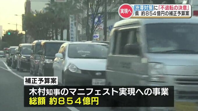 総額約854億円のうち最も多く計上されたのが、木村知事が「不退転の決意で実行する」とした渋滞対策の予算で、約75億8000万円に上ります。
