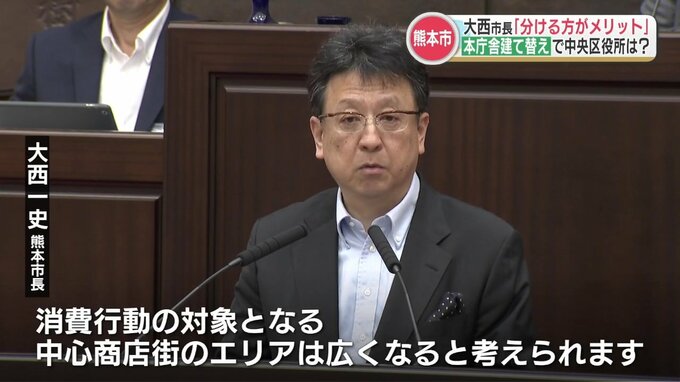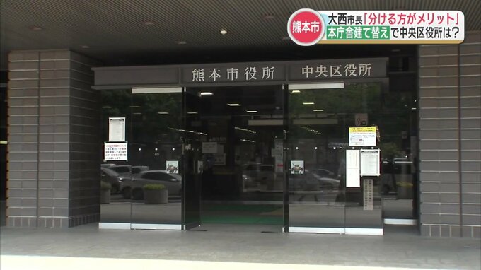 熊本市役所本庁舎の建て替えを巡り、熊本市の大西市長はきょう(7日)の熊本市議会で、本庁舎と中央区役所の建物を分けた方が、メリットは大きいとの認識を示しました。