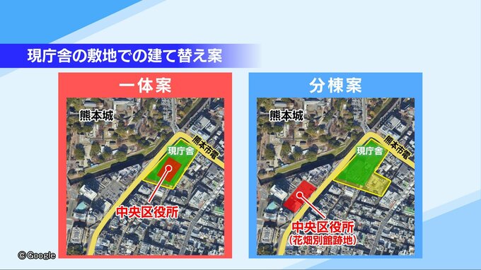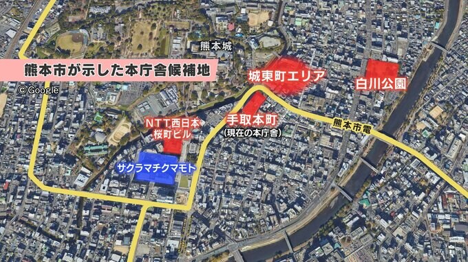 熊本市役所本庁舎の建て替えを巡っては現在、4か所の候補地が示されています。