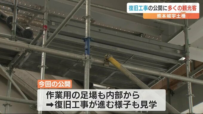 復旧工事が進む熊本城の宇土櫓(うとやぐら)で、素屋根の内部が一般公開され、熊本県の内外から多くの観光客が訪れました。