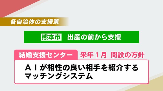 さらに、熊本市は出産の前の段階から支援しようということで、「結婚支援センター」を来年1月に開設します。AIが相性の良い相手を紹介するマッチングシステムが導入される予定です。