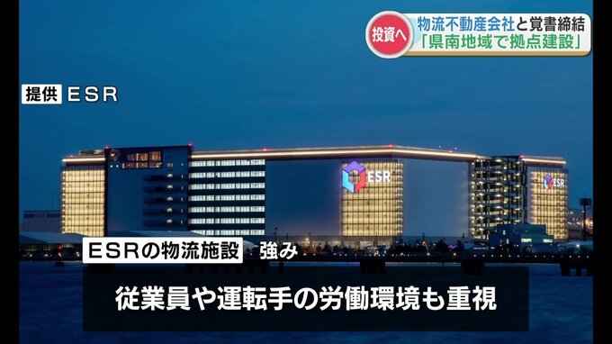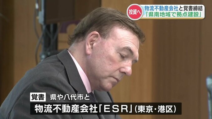 出席したESRのスチュアート・ギブソンCEOは、県南地域での物流拠点の建設などを念頭に、今後、10億ドル(1570億円)規模の投資を行う意向を示しました。