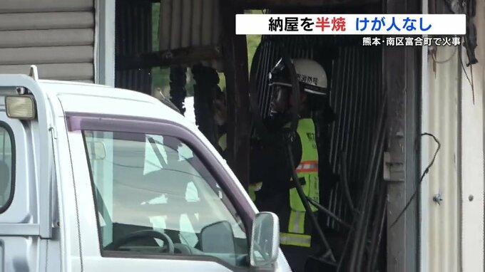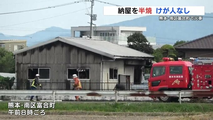 けさ(13日)、熊本市で火事があり、農機具などを置いていた納屋が半焼しました。